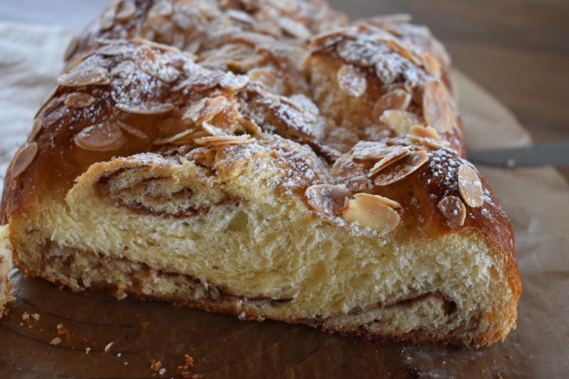 Ja, der Hefeteig wird mit Butter, Zucker und Zimt, Nüsse gefüllt. Rosinen lasse ich weg.