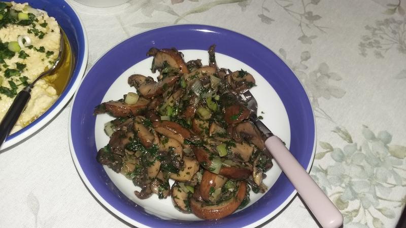 Die Champignons wurden mit Petersilie, Frühlingszwiebeln und Thymian eingelegt.