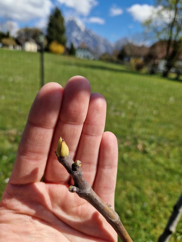 Die Knospen schwellen bzw. die ersten gehen auf.