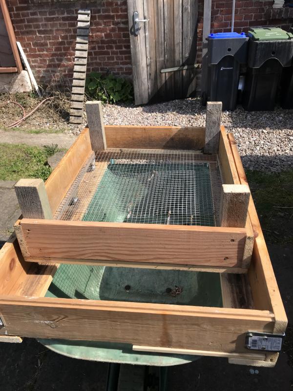 Ich habe mal ein Sieb im Baumarkt gekauft, das kann man auf die Scheibtruhe stellen und Erde dran werfen. Ich habe aber selten genug Zeit dafür, meist verwende ich den Kompost ungesiebt und hole nur die größeren Holzstücke raus.