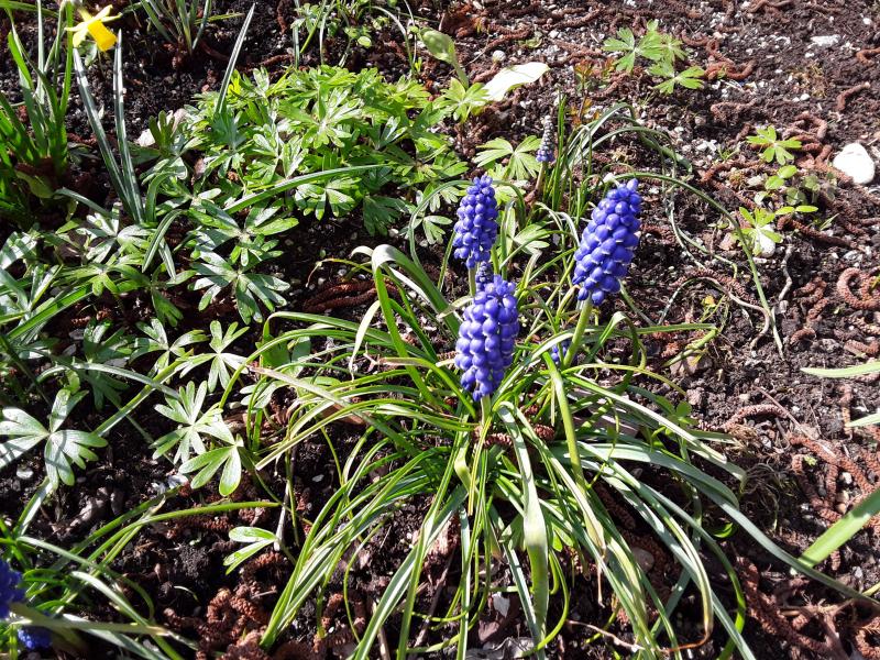 Bei uns kommen die Armenische Traubenhyazinthe (Muscari armeniacum) mittlerweile überall.