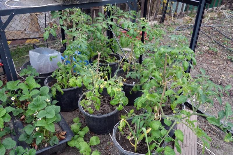 Und hier noch meine "Frühtomaten" im 10 Liter Kübel: