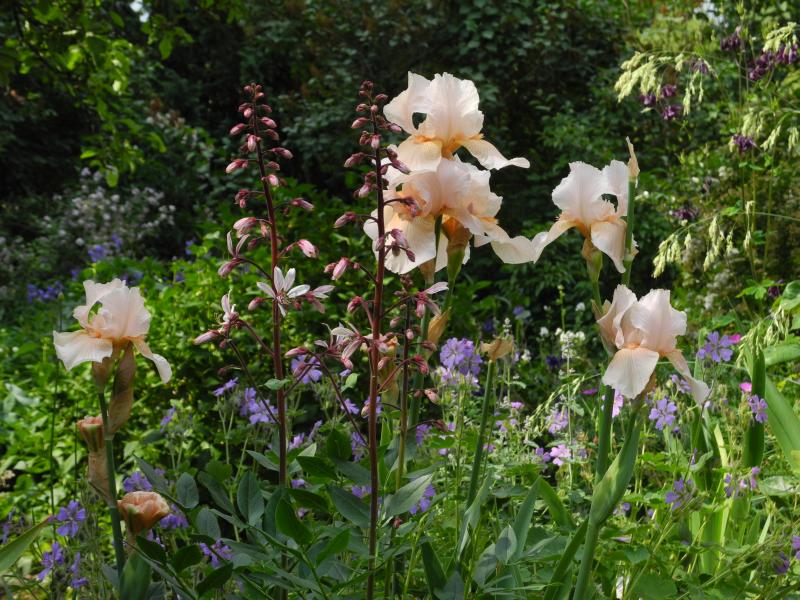 Ich mag das Bild mit der Iris Maui Surf besonders, die Farben und das Licht sind herrlich und die Kombi mit Iris und Zierlauch find ich auch immer ansprechend. Was hast Du da im Hintergrund? Rosa Marcorrhizum um einen Baum?