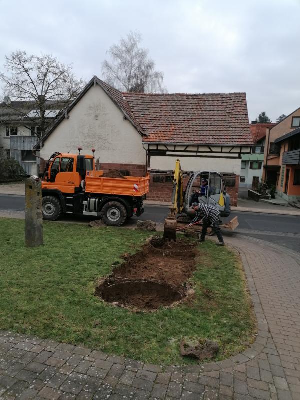 Dank meiner ganz phantastischen und absolut unersetzlichen Kollegen vom Bauhof wurde die Erde ausgebaggert. Für mich, der nahezu alles mit der Hand macht und am Boden krabbelt, ist es faszinierend, wie schnell und genau das mit einem Bagger klappt.