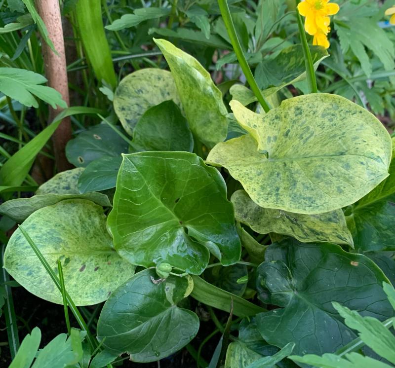 Begeistert bin ich von ‚Miss Janay Hall‘. Es ist ein Arum mit kleinen Blättern. Allerdings muss ich die grünen Blätter noch entfernen.