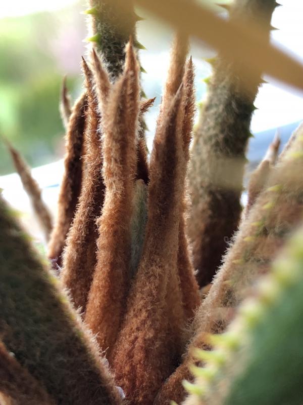 Und zum heutigen Abschluss das gerade neu austreibende Blatt von Ceratozamia molongo (fusco-viridis)