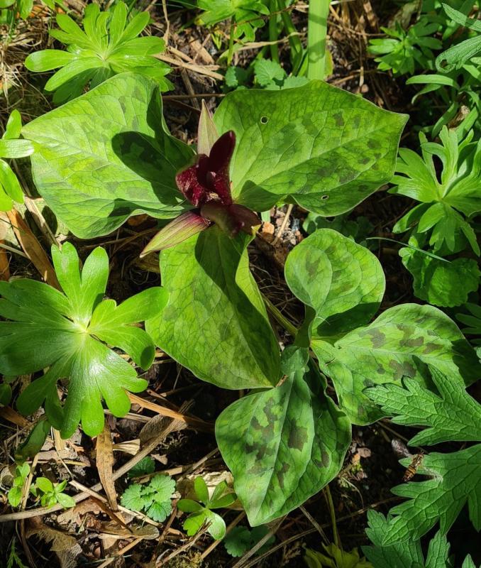 Hier laufen die Trillium zur Hochform auf. Sie haben Hagel und Frost zum Glück gut verkraftet.