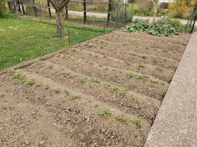 Bei den 13 Reihen die am 26.3. gelegt wurden ist noch nichts zu sehen.