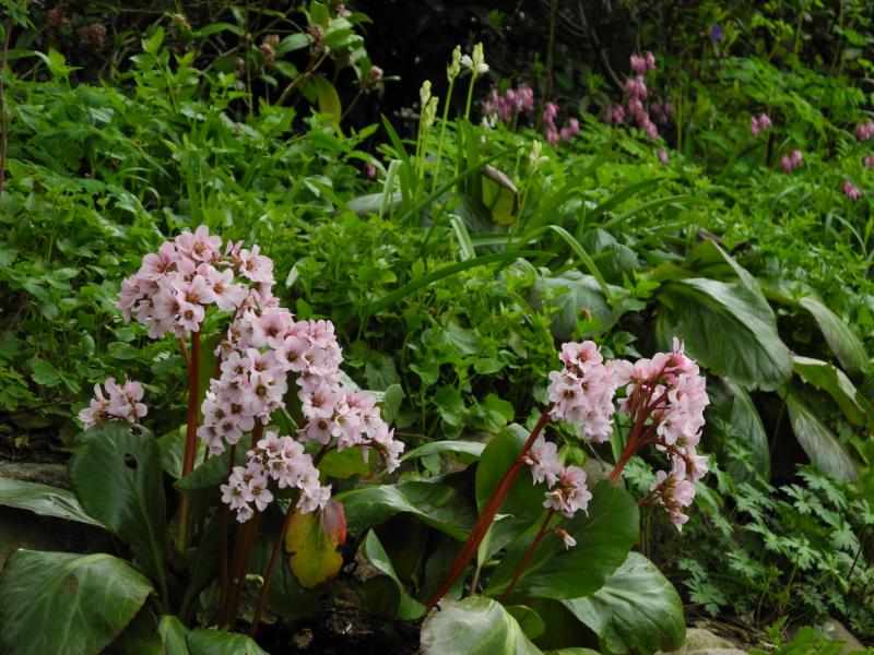 "Gute Nacht" mit 'Biedermeier' im Gewusel von Scilla, Dicentra eximia, Campanula