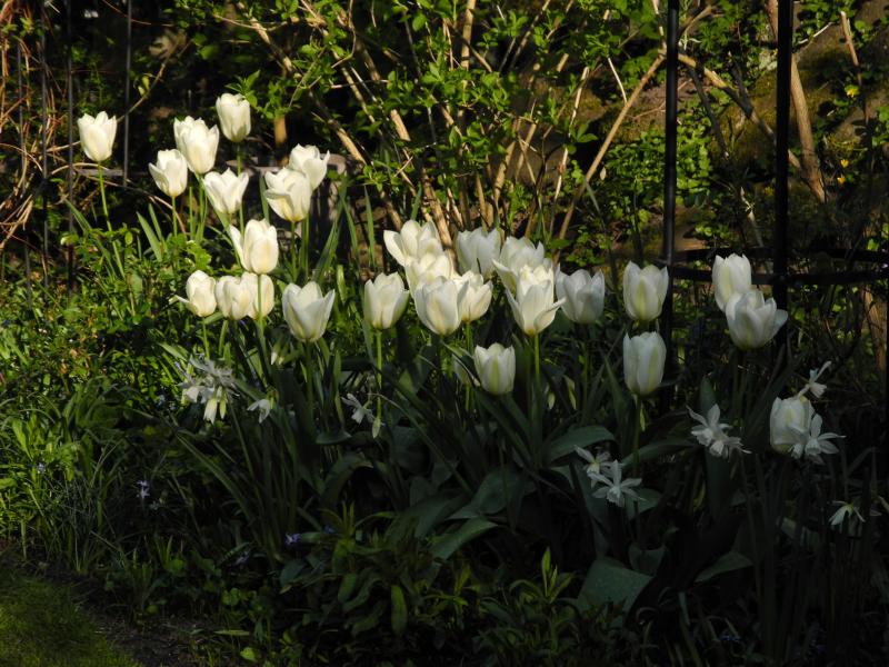 Etwas zarter... neu im letzten Jahr. Die haben sich unter der Wildkirsche erstaunlich gut vermehrt, noch etwas knospig, in den nächsten Tagen kann ich sie in Blüte zeigen. :D