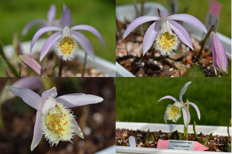 Als Pleione formosana "Light" bestellt. Auf den Fotos im Angebot feht dieser Pflanze die gelbliche Lippe die meine Exemplar aber leider hat und deshalb vermute ich auch hier eine Hybride mit P. grandiflora-Beteiligung. Höchstwahrscheinlich falsch.