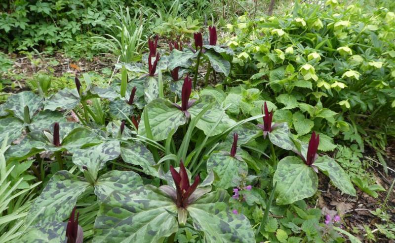 Trillium! Vor sehr langer Zeit aus Samen gezogen. Nie hätte ich damals gedacht, dass ich so einen schönen Bestand bekommen würde.
