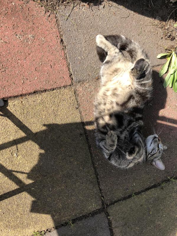 Hier ist letzten Samstag ein neues Familienmitglied eingezogen, ein 10 Monate altes Katerchen. Mit uns spielen mag er, beim anfassen ist er noch sehr skeptisch. Mit den großen Katern kommt er klar, Fauchen vom Chef ignoriet er gekonnt. Wir haben ihn direkt von einer Züchterin, da hatte er ganz viel Katzengesellschaft und fand Menschen weniger wichtig.
