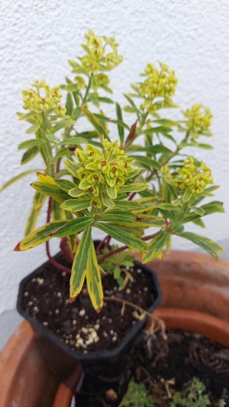 Meine Pflanze ist leider noch eintriebig und wenn sie wirklich dem Formenkreis um Euphorbia palustris zugehörig ist, wird es vermutlich auch noch einige Jahre brauchen, bis sie so üppig ist.