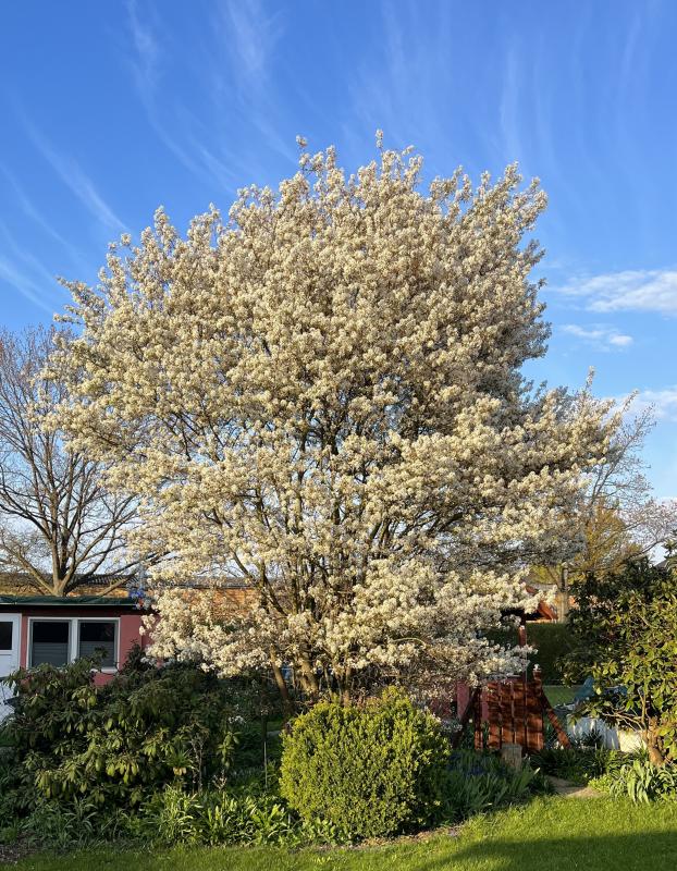 So ist es. Die einzige Zeit des Jahres, an der mir Felsenbirnen nicht ganz so gut gefallen, ist die Zeit nach der Blüte vor der Fruchtbildung. Dann sehen die vielen abgeblühten Blütenstände ein wenig strubbelig aus.