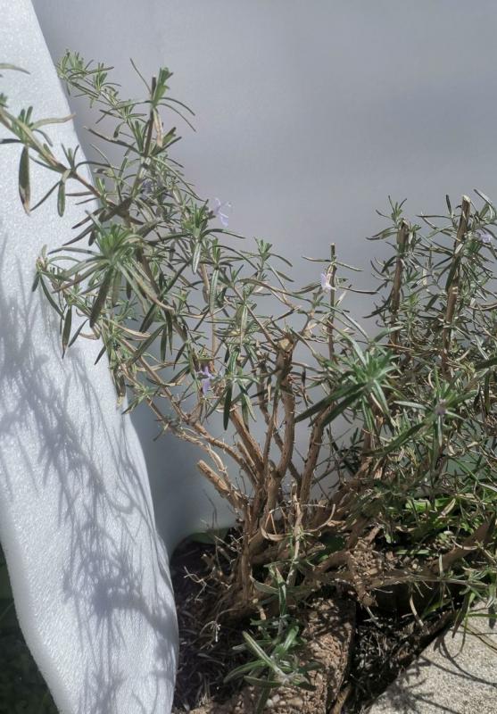 Und ich war schon ganz glücklich, daß dieser eine Rosmarin erstmals einen (und dann 2 weitere) Winter im Freiland überlebt hat. Bisher waren meine Rosmarin im Winter im Freiland immer erfroren (und im Haus vom Ungeziefer zerfressen).