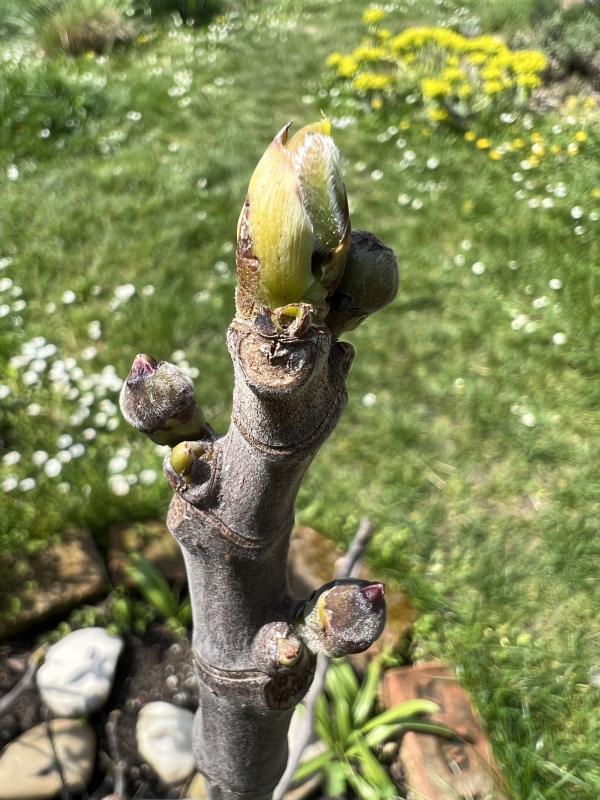 Brebas waren mehrere oben, die sind alle vertrocknet abgefallen. Eine scheint überlebt zu haben. Wenn sie noch rechtzeitig austreibt und eine Aussicht auf Feigen im Herbst besteht, überlege ich mir ob ich ihr noch ein Jahr gebe.