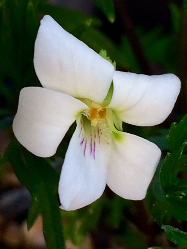 Hier ein simples rosa Hain-Veilchen - Viola riviniana 'Rosea'. Fühlt sich in sonnigen Fugen offensichtlich wohl.
