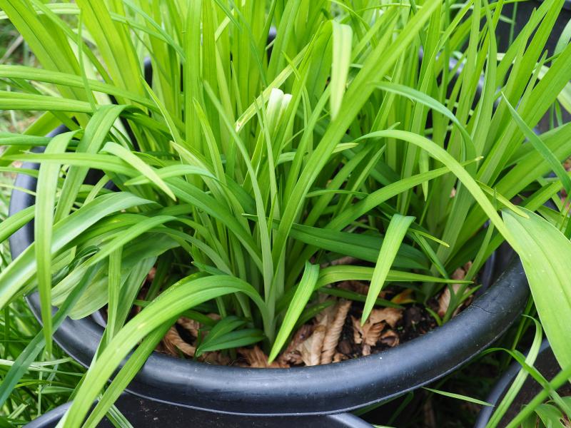 Taglilien die im Topf vor sich hin köcheln sind darüber zwar nun nicht gerade glücklich, gehen aber auch nicht sofort kaputt. Beim Inspizieren der Töpfe gerade eben ist mir das am Grund violett getönte Laub der falschen LA aufgefallen, meines Wissens ein Kennzeichen der Citrina. Und die haben es tatsächlich auch, die anderen dagegen nicht. Wobei diese Tönung aufgrund von Iris-Erfahrungen auch mal in die Irre führen kann...