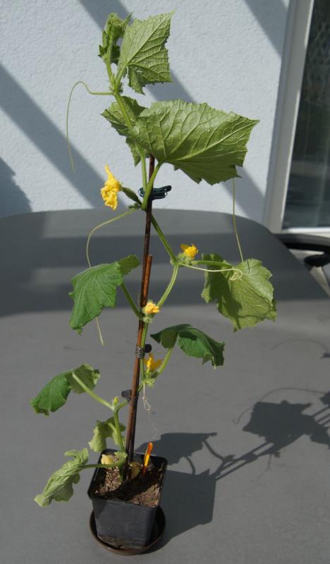 Ja, gut aussehen tut sie. Die Frage bei Gurken ist, wie sie sich hinterher im Beet machen. So ein Eintrieber mit regelmäßig eingekürzten Seitentrieben kann über 5m werden.