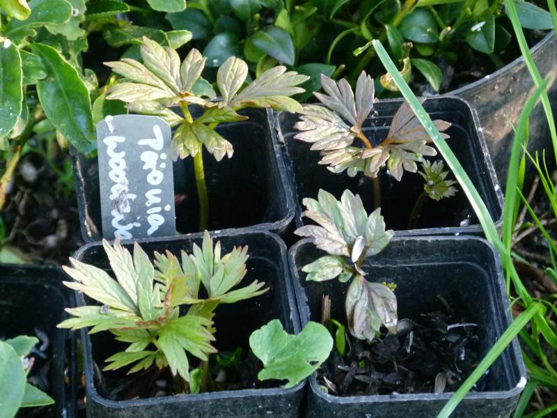 Päeonien sind nicht einfach im Topf zu züchten. Im Topf sind die Würzeln empfindlich für verfaulen. Meist werden Sämlingen / Teilstücken im Boden ausgepflanzt. Für den Verkauf werden diese dan im Topf gesetzt (oder als Würzeln geliefert in September/Oktober).