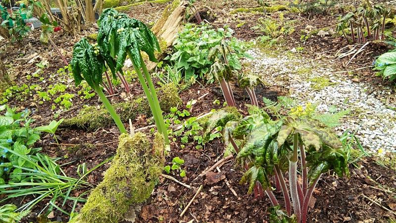 Mehr als wüchsig ist Podophyllum peltatum. Ich schiebe schon eine ganze Weile vor mir her, es mal einzudämmen. ::)