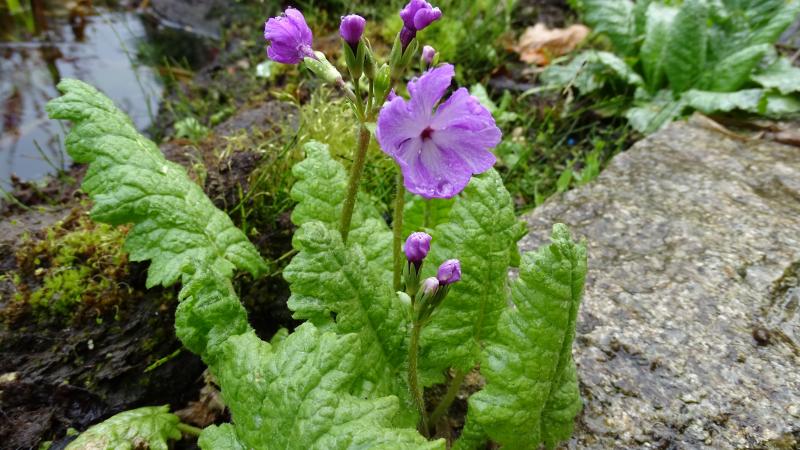 Ganz angetan war ich im vergangenen Jahr von Primula pruhoniciana Garryarde Guinevere. Die wächst auch sehr schön und zeigt bereits in diesem Jahr deutlich mehr Blütenansätze.