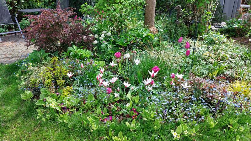 Der letzte Sommer hat die Tulpenzwiebeln gut gebacken. Im Garten und auf meinen Baumscheiben haben sie ordentlich zugelegt, so dass es dieses Jahr ein Fest ist. Dafür haben diesmal die Narzissen teilweise etwas weniger geblüht.