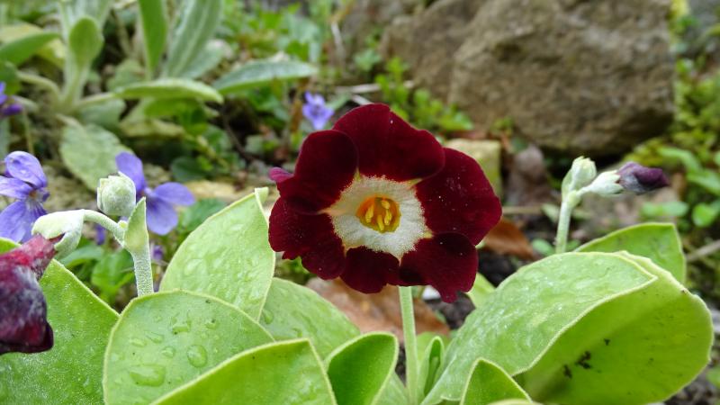 und eine Gartenaurikel in Hellblau, die schon 20 Jahre alt ist oder so.
