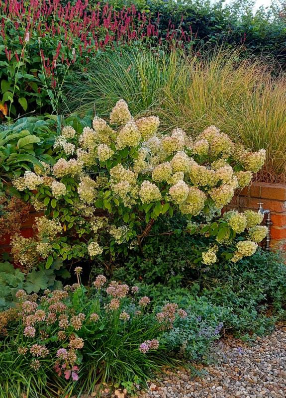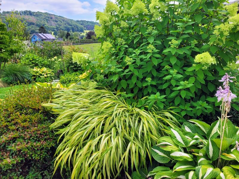 Ja, die blauen Blüten sind schön, vom Boden so gefärbt, denn sonst wäre sie rosa... ist aber keine Samthortensie sondern (wie geschrieben) Hydr. serrata Oamacha. ;) Sehr hübsche Kombi, deine 'Lime Green' mit der stimmigen Unterpflanzung. :)