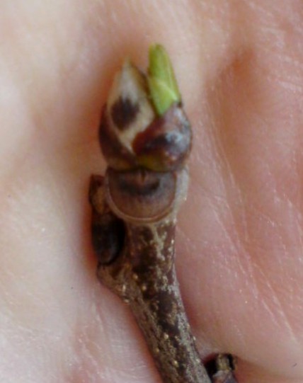 Die Blätter unten sehen auch nicht vital aus, der obere Bereich, wo ich eigentlich eine Krone erziehen wollte, wirkt tot. Ein bischen warte ich noch mit Schnitt.