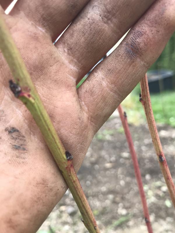 Anhand vom Foto kann man nur sagen das der Pflanzschnitt verpasst wurde, aber keine Diagnose bezüglich Schaderreger stellen.