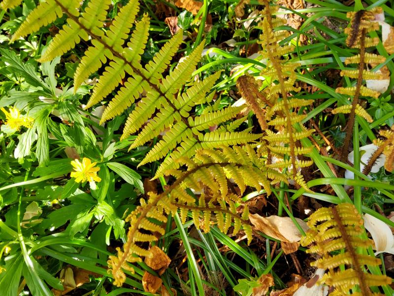Stelle mir auch Schlimmeres vor als invasive Haarfarne. Würde die gerne in jeder Ritze ansiedeln aber bis auf den einen Spot tun sie sich eher schwer hier. Es gibt sogar ein Verhaltensmuster: die heute schöne Kolonie hatte ich mir damals als 2-3 wurzelnackte Mini-Fragmente irgendwo eingesteckt und einfach in bemooste Pflasterritzen gesteckt. Alle anderen Versuche war getopfte "Convenience-Ware" im edelsten Torf-Substrat. Sie kriegen einfach nicht den Sprung ins normale Erdreich hin.