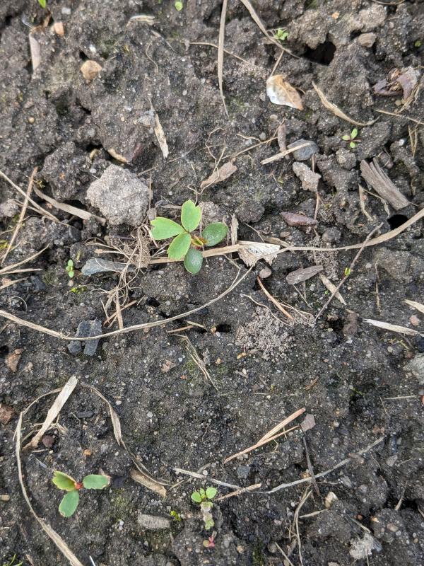 Zusätzlich hatte ich aber auch Samen direkt rausgepult und in die Erde gelegt und über Winter mit Reisig abgedeckt. Tataaaa, und hier sind schon ein paar gekeimt. Allerdings hab ich eine bunte Mischung von Hagebutten verschiedener Rosen durcheinander ausgesät und kann nicht sagen, ob es eventuell nur besonders robuste Wildrosen sind, die nun gekeimt sind.