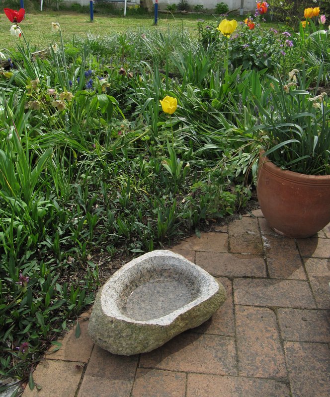 Neulich hatte ich Lust, was zu basteln :). ein Stückl Weg als Eingang zum "Geheimen Garten". Hätte noch schöner werden sollen, aber der Mörtel hat derart schnell angezogen, dass ich kaum Zeit zum Mosaiken hatte ;D