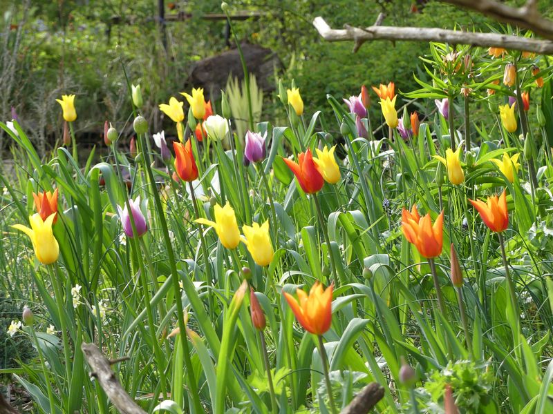 Hier blühen nun die Tulpen in den zwei neu bepflanzten Beeten. Ich muss tatsächlich mal in den Rechnungen schauen, ob ich die so bestellt habe...