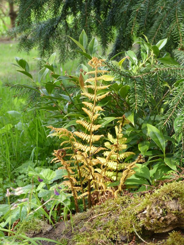 Stelle mir auch Schlimmeres vor als invasive Haarfarne. Würde die gerne in jeder Ritze ansiedeln aber bis auf den einen Spot tun sie sich eher schwer hier. Es gibt sogar ein Verhaltensmuster: die heute schöne Kolonie hatte ich mir damals als 2-3 wurzelnackte Mini-Fragmente irgendwo eingesteckt und einfach in bemooste Pflasterritzen gesteckt. Alle anderen Versuche war getopfte "Convenience-Ware" im edelsten Torf-Substrat. Sie kriegen einfach nicht den Sprung ins normale Erdreich hin.