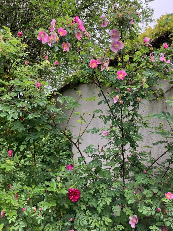 Ein Portrait meiner beiden alten Strauchrosen, die an der Haustreppe bis hoch zur Haustür wachsen und mich mit süssem Duft begrüssen, wenn ich hinaustrete. :D