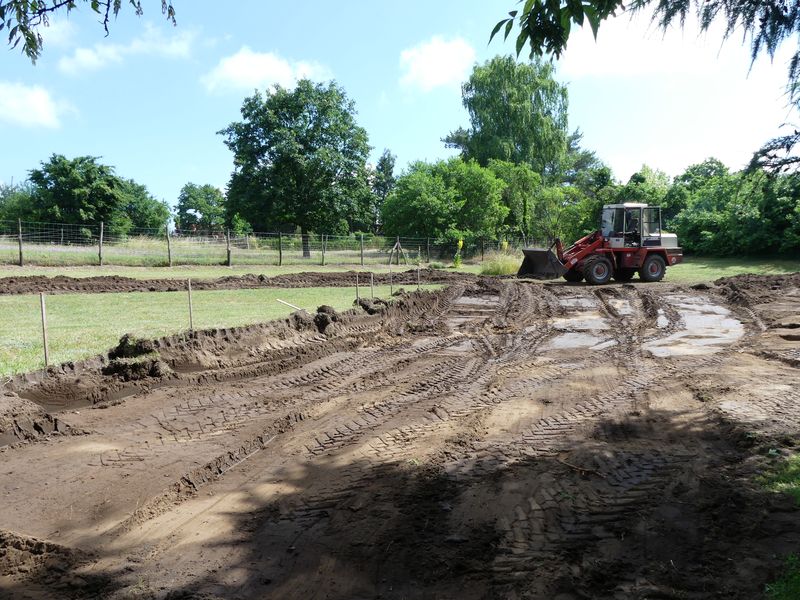 Die 70 mm Niederschlag der letzten zwei Tage haben die Arbeiten sehr erleichtert, auch wenn die Verdichtung dadurch sicherlich auch begünstigt wurde. Nach den Erdarbeiten war ich dann noch gute drei Stunden mit der Fräse unterwegs, um das gröbste wieder aufzulockern, bevor alles abtrocknet.