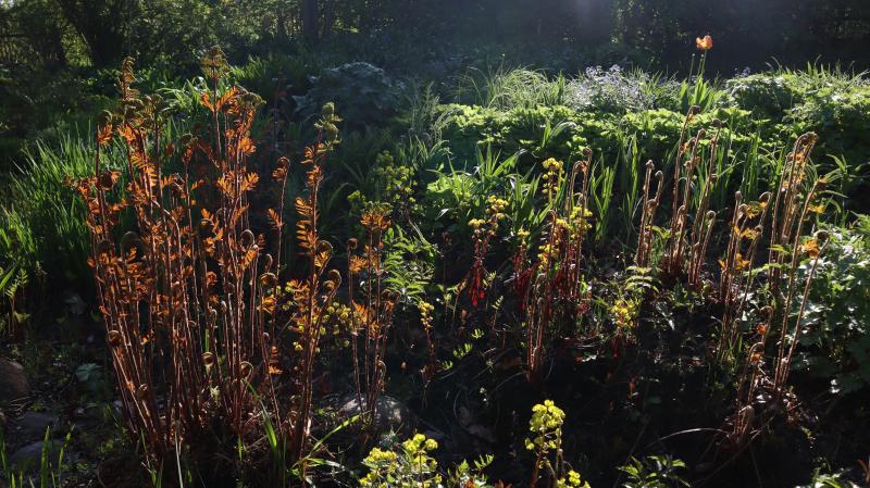 Dryopteris f.-m. crispa leuchtete heute etwas in der Sonne