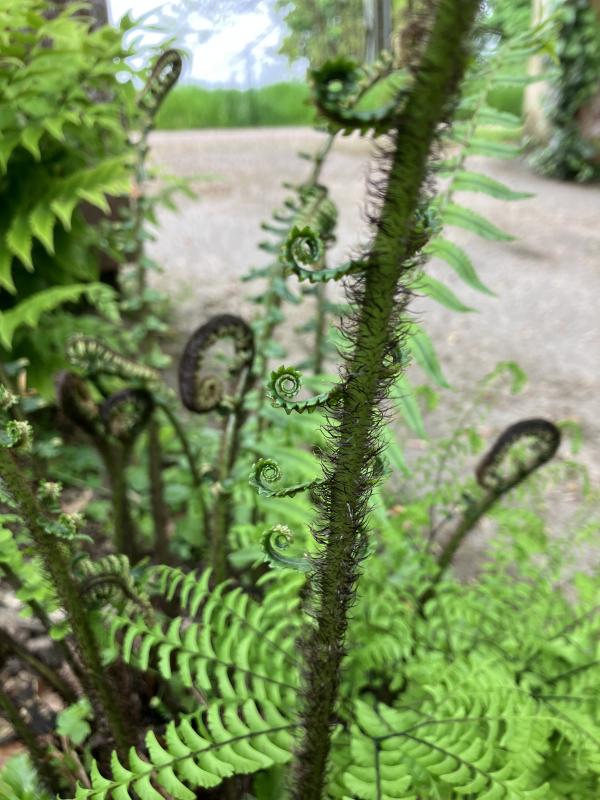 Den bekam ich letztes Jahr noch von Wouter. Mal sehen, was draus wird: Polystichum set. 'plumosum green'