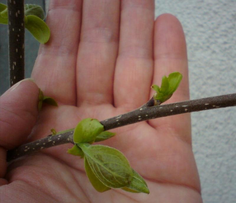 Die Zweige zeigen neue Knospen, es geht also weiter. Erfreulich finde ich die Frostschäden dennoch nicht, immerhin hatten wir min. -8°C in diesem Winter, der Spätfrost war bei -2°C. Wie soll die Pflanze dann mal nach einem echten Winter überleben?
