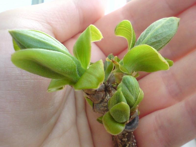 Die Blätter unten sehen auch nicht vital aus, der obere Bereich, wo ich eigentlich eine Krone erziehen wollte, wirkt tot. Ein bischen warte ich noch mit Schnitt.