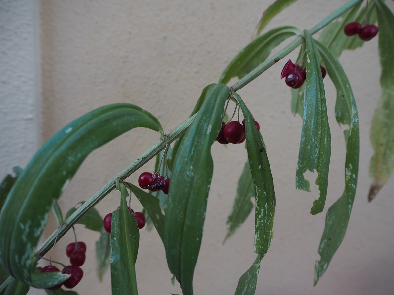 Das Polygonatum wirkt schon toll vor der weißen Wand! Steht es im Topf und auch im Winter ungeschützt? Hat es schon einmal Saat produziert?