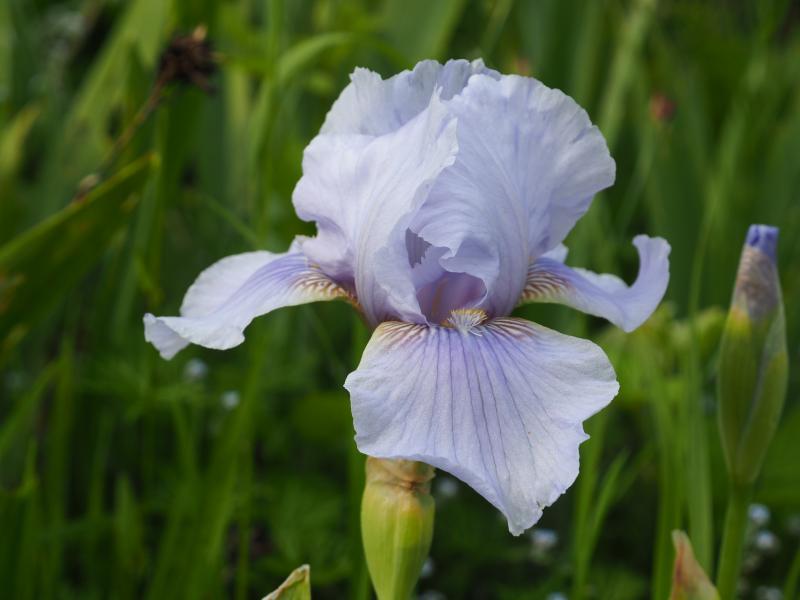 Die kann später kleiner. Hier ist sie dieses Jahr auch enorm großblumig und hoch. So wie viele andere. Besonders in Ecken mit Iris, die gerade nach der Verjüngung in Fahrt kommen, wähnt man sich kurz im Wald. Und dieses Frühjahr ohne Dürre treibt sie zusätzlich an. Selbst die jüngeren Zwerge wachsen über sich hinaus.