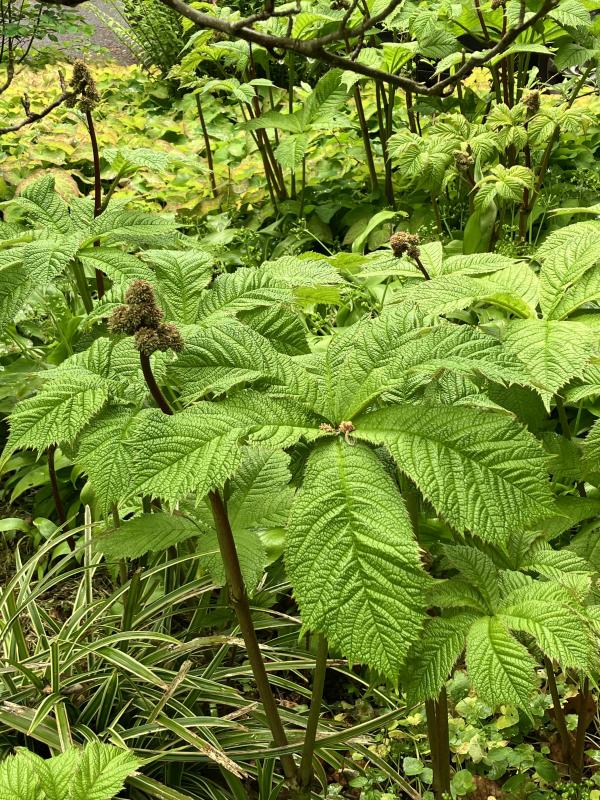 Blütenvorschau: Es wird ein gutes Rodgersiajahr. ( Kein Wunder bei all dem Wasser.)