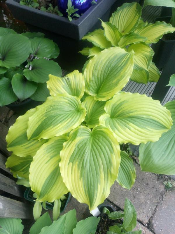 Deine sportliche Erotica ist eine Wucht! sowas von auffälliger, schöner Hosta. Wie groß wird sie?