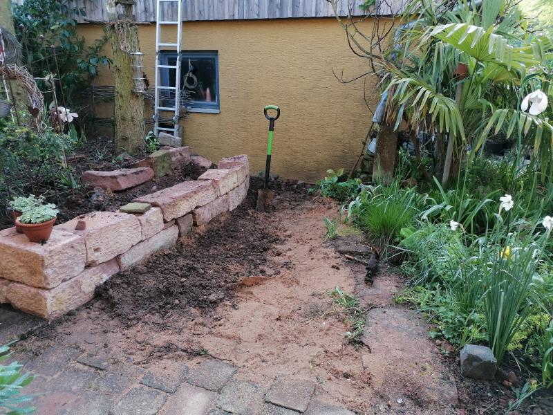 Das Mäuerchen ist wirklich sehr hübsch geworden! Mit den Sandsteinquadern ist's auch etwas einfacher, als so etwas aus Bruchsteinen zusammenzupuzzeln, aber beides hat seinen Charme, vor allem rund ums Haus sind solche klaren, geraden Linien ein schöner Ruhepol fürs Auge. Auf die Bepflanzung bin ich ebenfalls gespannt! :)