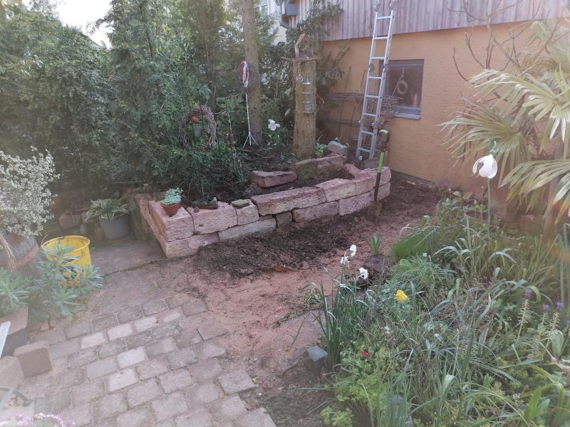 Das Mäuerchen ist wirklich sehr hübsch geworden! Mit den Sandsteinquadern ist's auch etwas einfacher, als so etwas aus Bruchsteinen zusammenzupuzzeln, aber beides hat seinen Charme, vor allem rund ums Haus sind solche klaren, geraden Linien ein schöner Ruhepol fürs Auge. Auf die Bepflanzung bin ich ebenfalls gespannt! :)