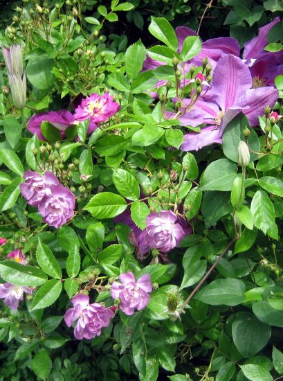 Auch bei den Viticellas gibt es unterschiedliche Blütenzeiten. Zur Rose 'Veilchenblau' würde ich die 'Huldine' und C.grata oder C.x triternata 'Tranquility' pflanzen.
